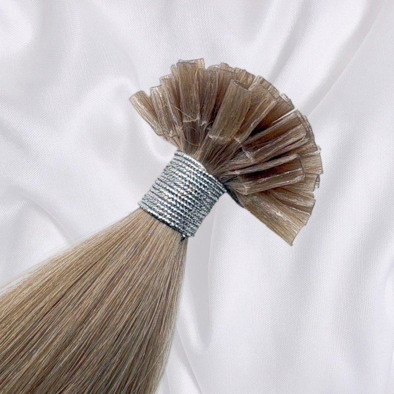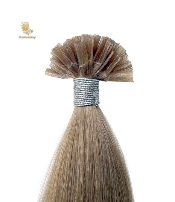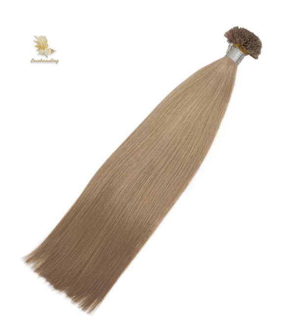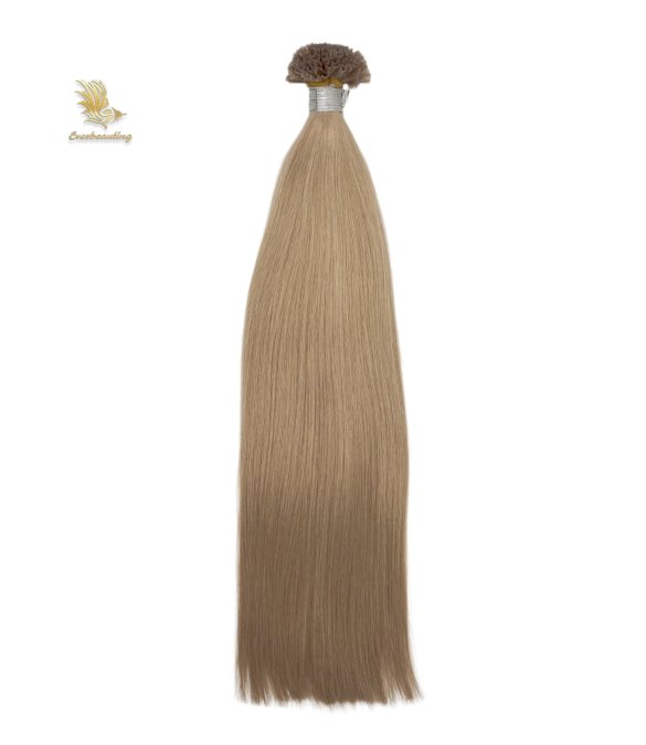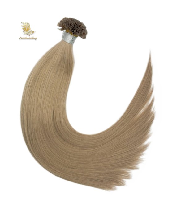 Keratin U-tip hair extensions are hair strands with a U-shaped tip made of artificial keratin (glue). They are attached to natural hair by melting the glue with a heating tool and fusing it with the original hair, providing a long-lasting hair enhancement effect.. Fusions tip hair extensions are flexible, comfortable to wear and virtually undetectable.